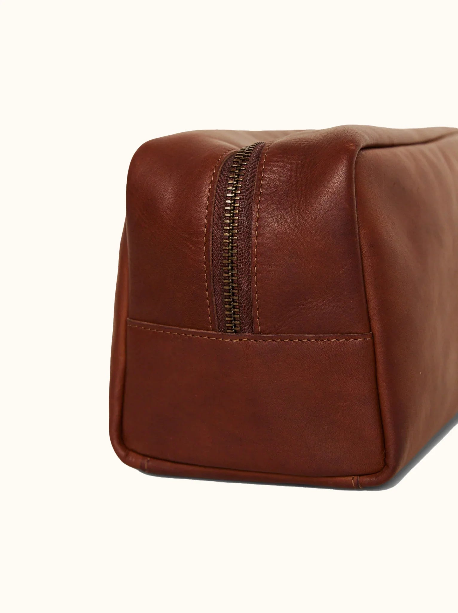 Made of our signature full grain pull up leather, this travel case is designed with a hang strap to make it easy for you to carry your essentials while you travel. Keep your cards secure with the two credit card slots and organize your lipstick, keys, and phone with the two interior pockets.
