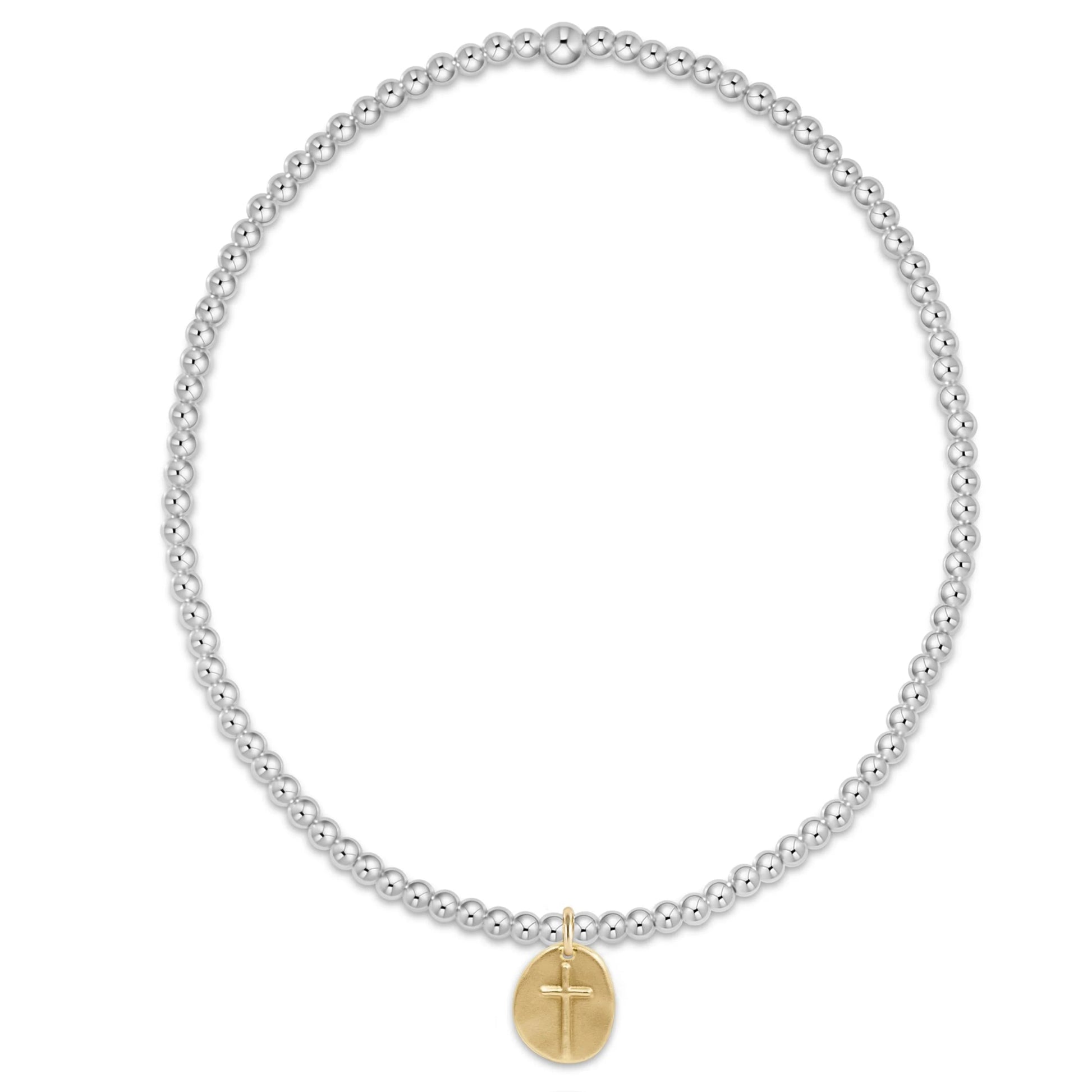 CLASSIC STERLING MIXED METAL 2MM BEAD BRACELET- INSPIRE SMALL GOLD CHARM