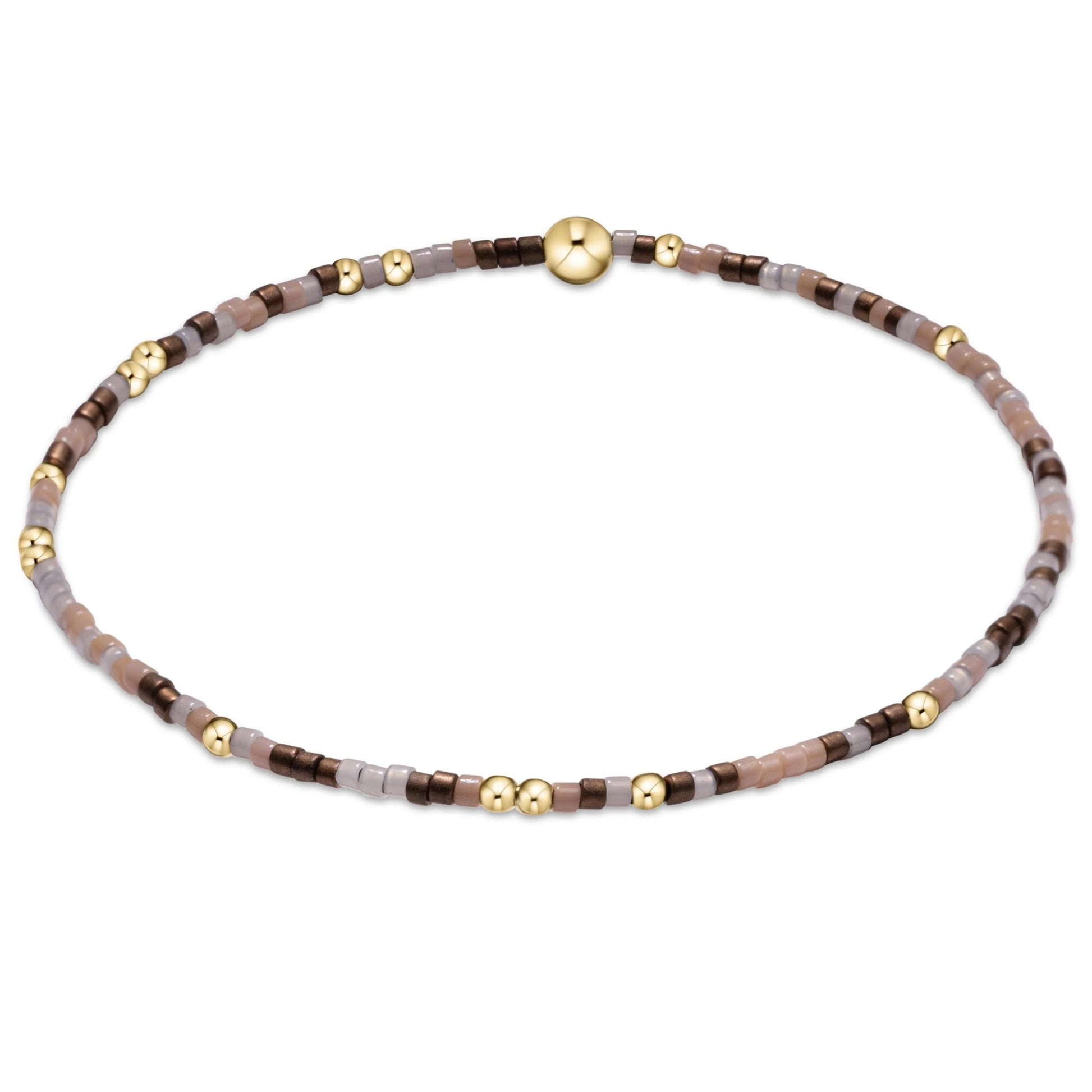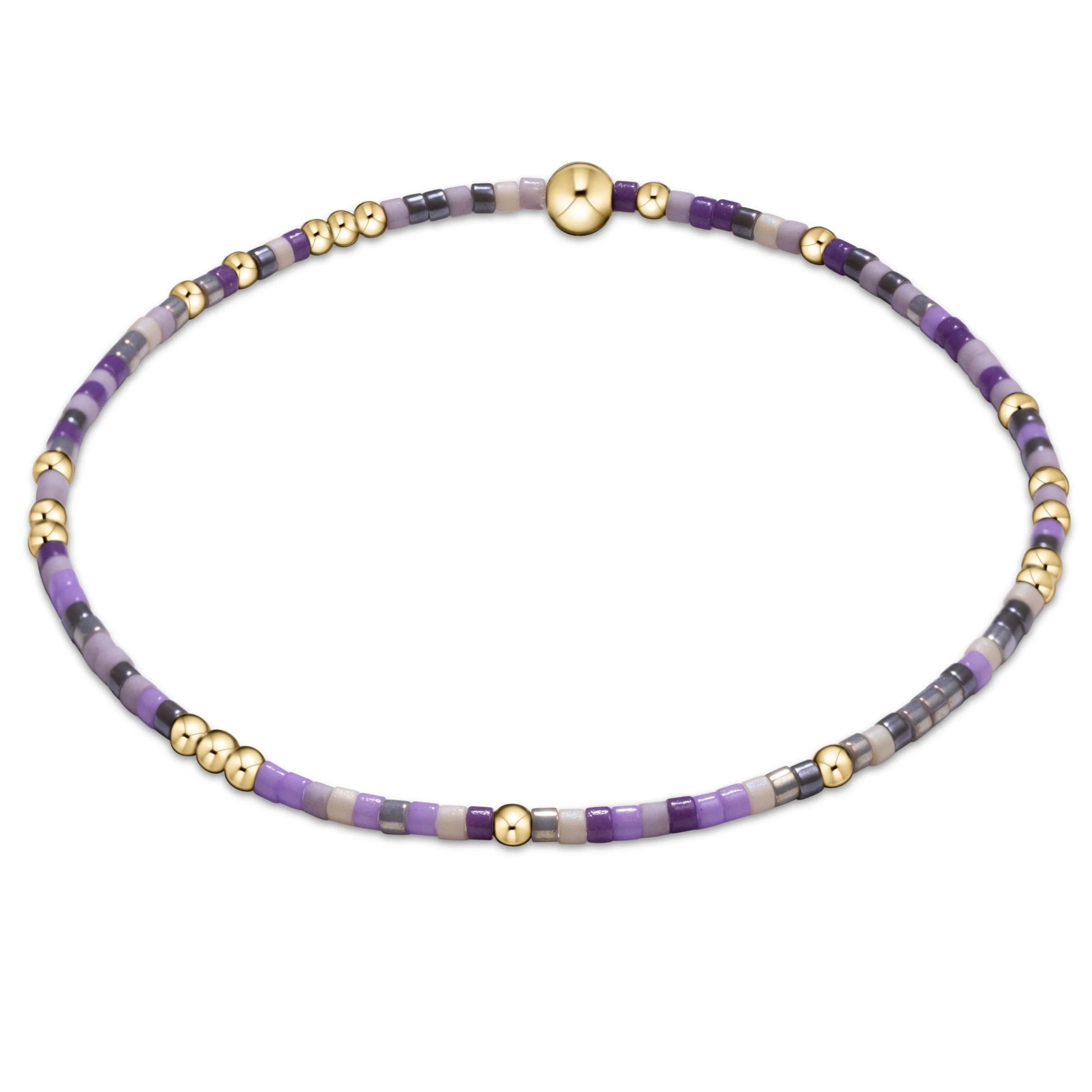 Hand beaded on high performance elastic for a slight stretch to easily roll on and off your wrist