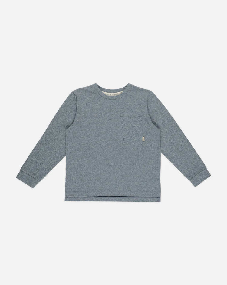 LONG SLEEVE POCKET TEE || HEATHERED INDIGO