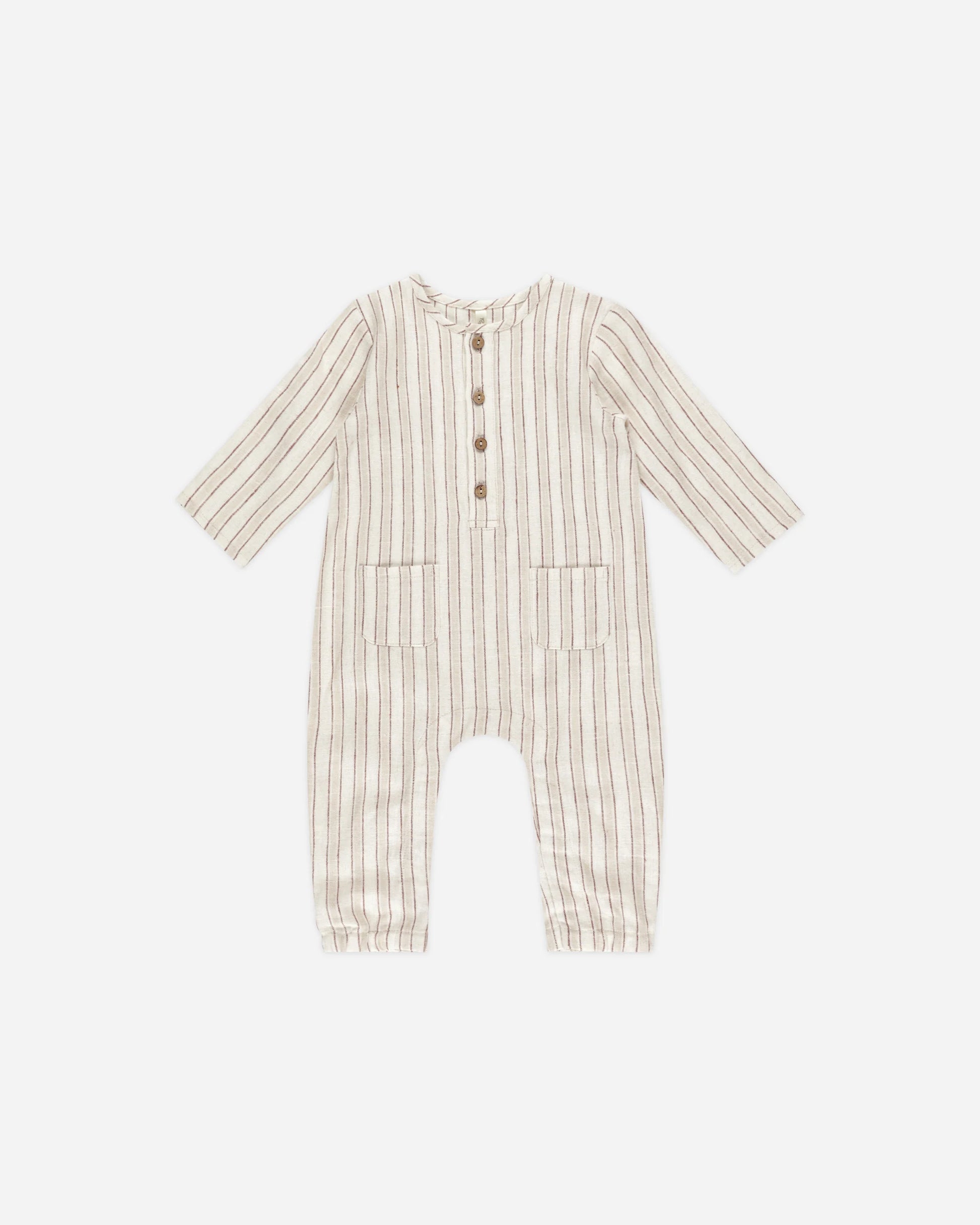 LONG SLEEVE WOVEN JUMPSUIT || STONE STRIPE