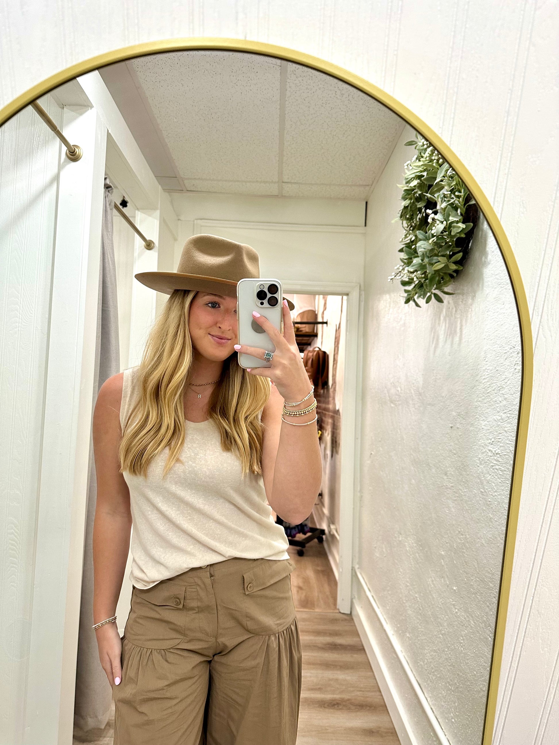 Gigi Pip's bestseller for good reason! The Monroe is the quintessential fedora that will stand the test of time + be a staple in any wardrobe. Featuring a teardrop rancher crown with a stiff, upturned brim paired with a tonal grosgrain band.