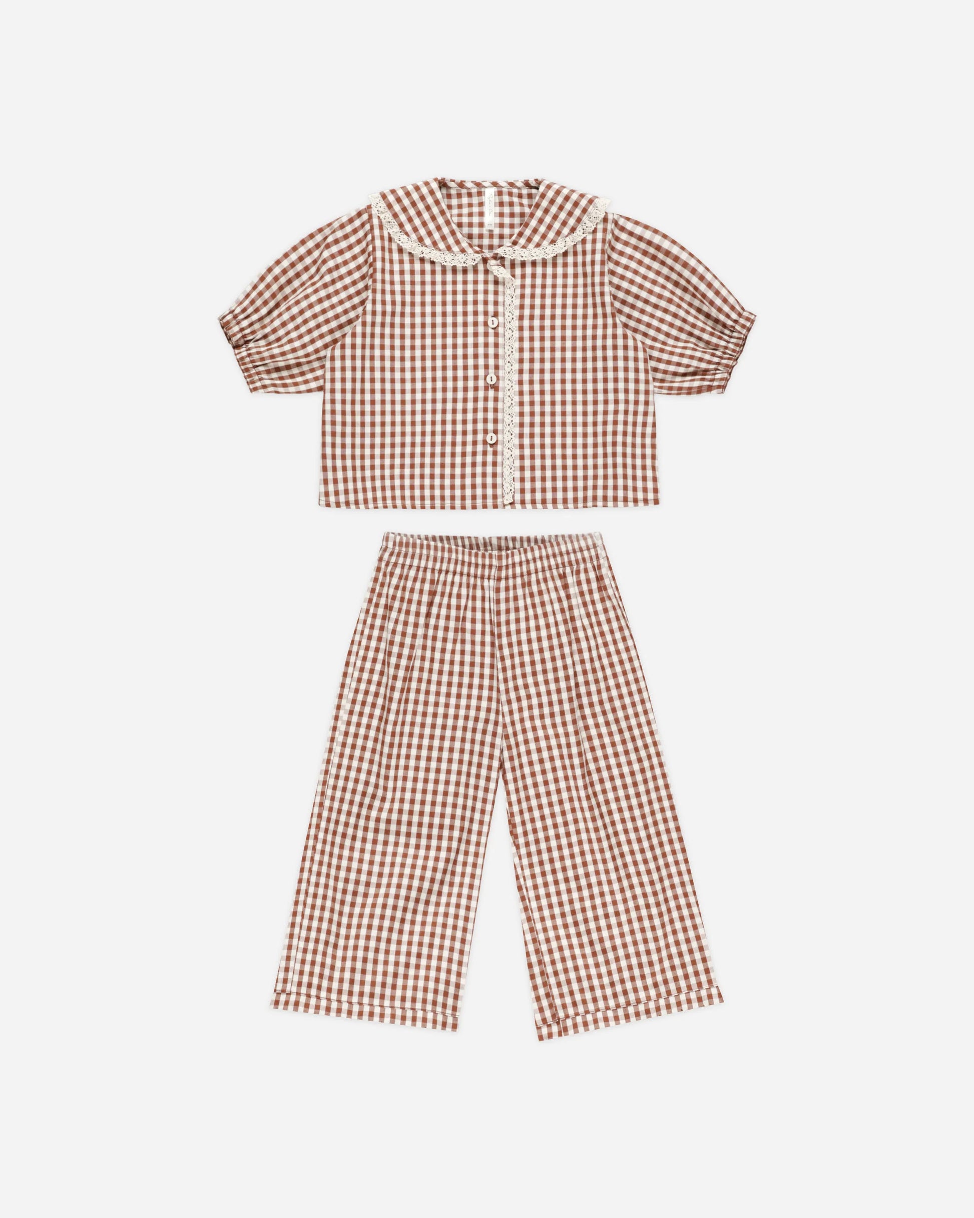 RUFFLE PAJAMAS || BRICK GINGHAM