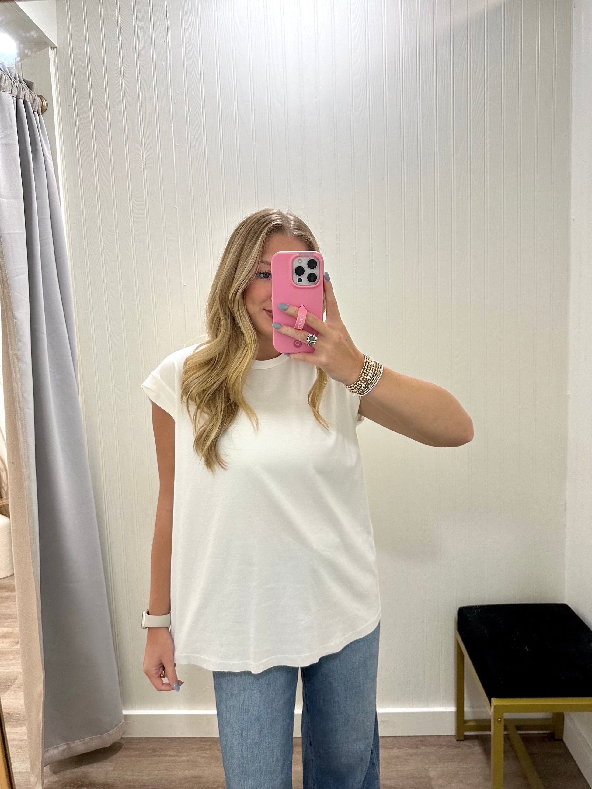 Add some classic edge to your collection with The Remy Top. This muscle shoulder-style top features a rolled armhole band and full tunic length. This top is sure to elevate your basic tee rotation.