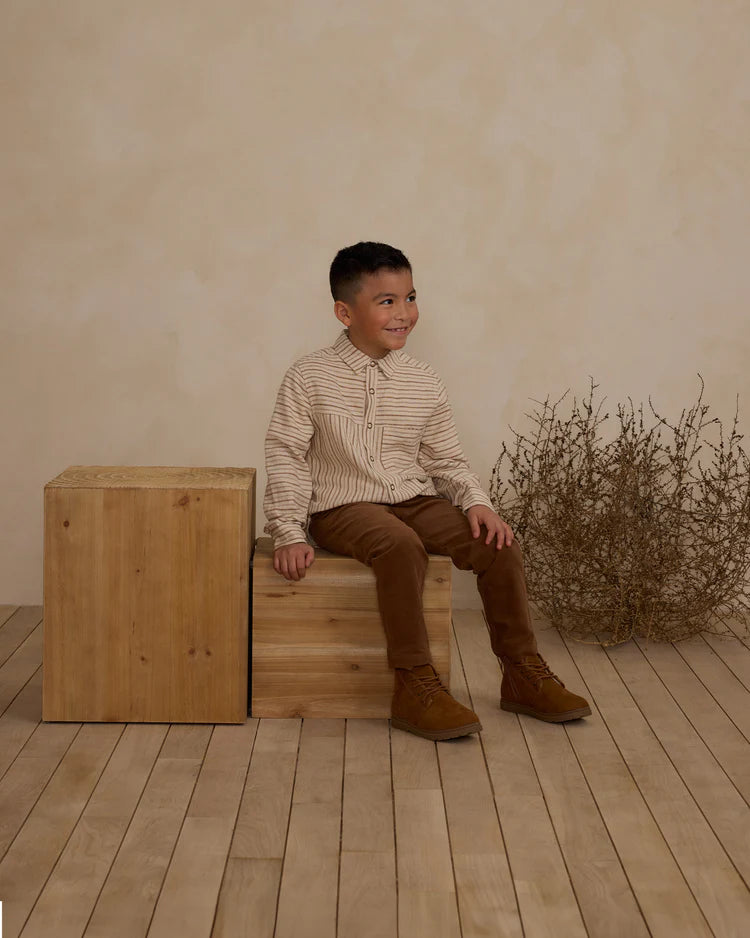 Our Walker Shirt features a relaxed fit, button-up front, and one front chest pocket.